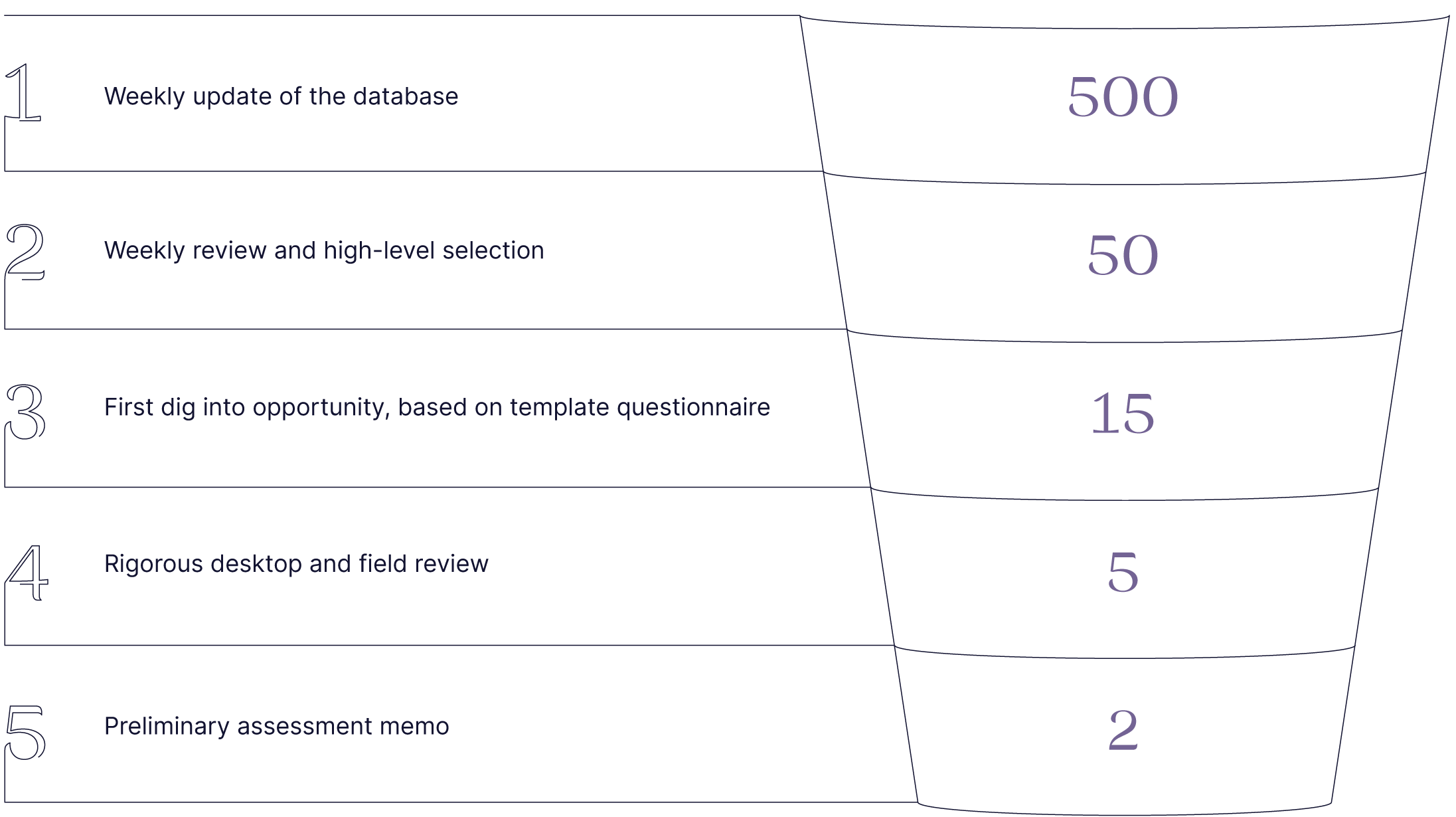 Inbound/Networks/Research 400 opportunities reviewed per year.